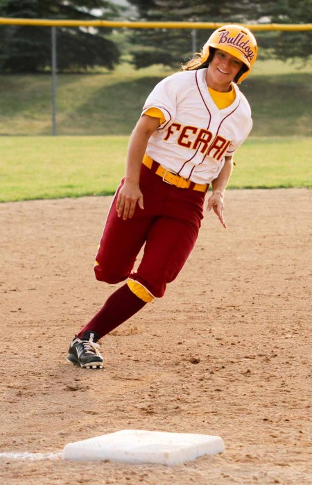 Softball Season: FSU freshman outfielder Jordan Maxwell prepares to round third base during the Mar. 19 game against Aquinas. The Bulldogs are currently 10-12 for the 2012 season. Photo By: Brock Copus | Multimedia Editor
