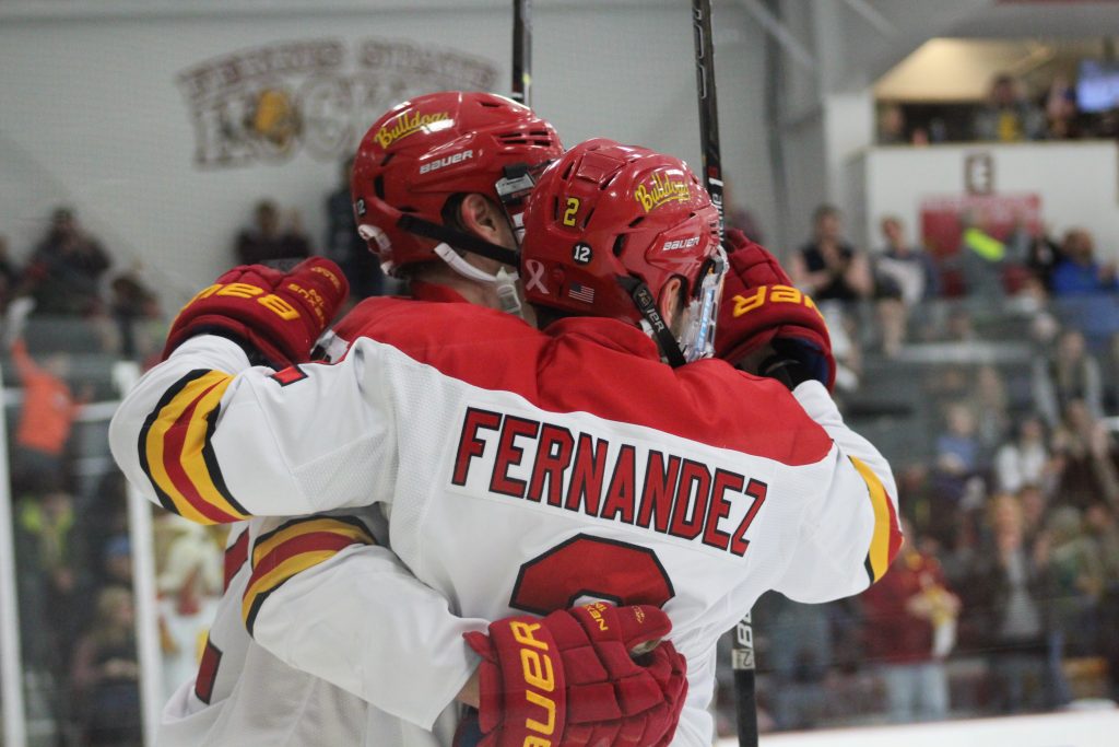 Ferris’s defense was stellar on Friday, Feb. 17, allowing only 11 shots on goal. Stops on defense led to consistent fast break opportunities for the Bulldogs and chance after chance at the net. The Dawgs had 39 shots on goal on the night.