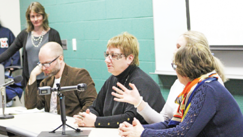 Elena Gavrilova and Olga Zinnurova, who are professors at Kazan Federal University, joined Ferris history professors Tracy Busch and Christian Peterson in the panel. The Russian guests had their thoughts translated by Ferris adjunct English professor Lilia Caserta.