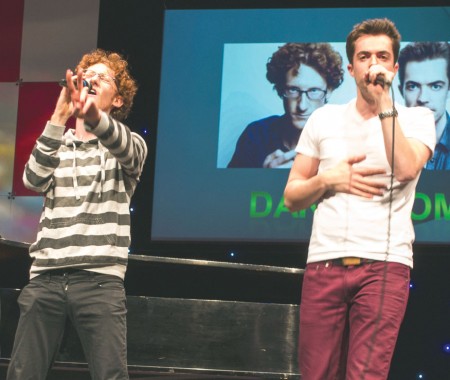 Peglar started out on the piano as McLain leapt off the stage and into the crowd to serenade and dance with one lucky lady. They did their own rendition of “I Can Do Anything Better Than You,” a Dakaboom FAQ, 50 television theme songs in under five minutes and a fake commercial promoting themselves.