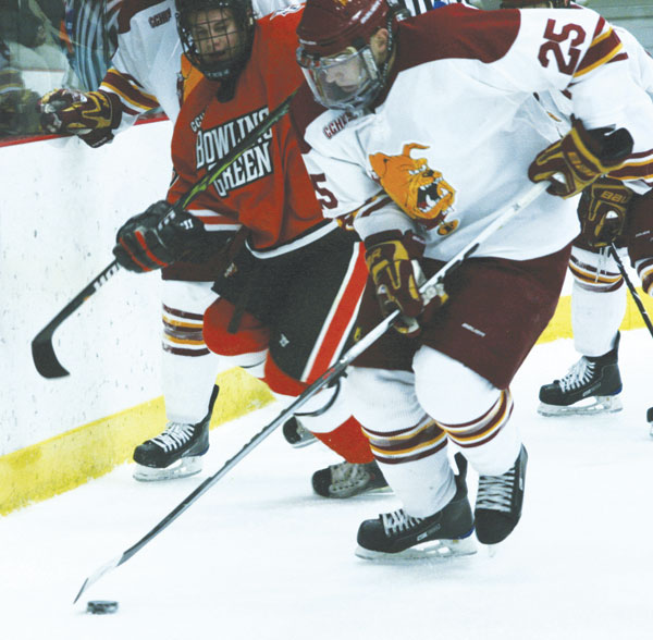 Starting with a scoreless first period, the Bulldogs struck first in the second period as senior right wing Aaron Lewicki scored a power-play goal midway through the period to give the team a 1-0 lead.