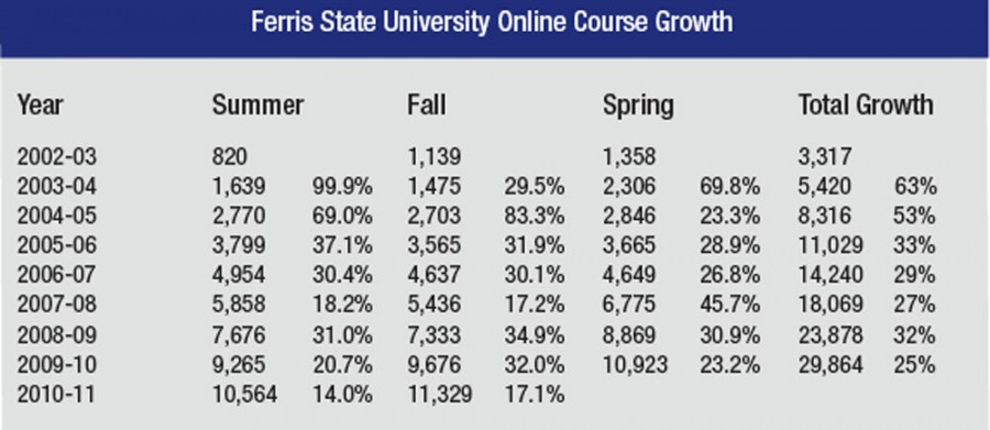 Teahen said the increase in online enrollment can be attributed to the large amount of Ferris students with part-time jobs and other commitments.