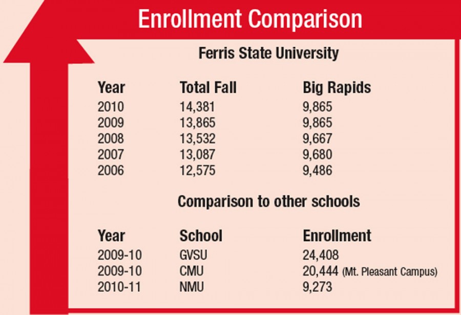 Increasing Enrollment and Tuition: A record-breaking 14,381 students are currently attending Ferris State, which is a 3.6 percent increase in students from the 2009-10 school year. Even with this high increase in FSU   enrollment, tuition was still raised by 4 percent this year. Photo By: Kate Dupon | Photo Editor