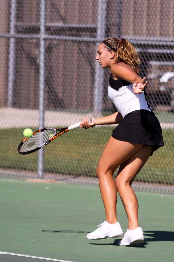 Women’s Tennis: FSU senior Natalie Diorio returns a ball during a match against Wayne State on Sept. 10. The Bulldogs fell to Wayne State 5-4, bringing the 2011-12 season to 3-1 overall. Photo By: Brock Copus | Multimedia Editor