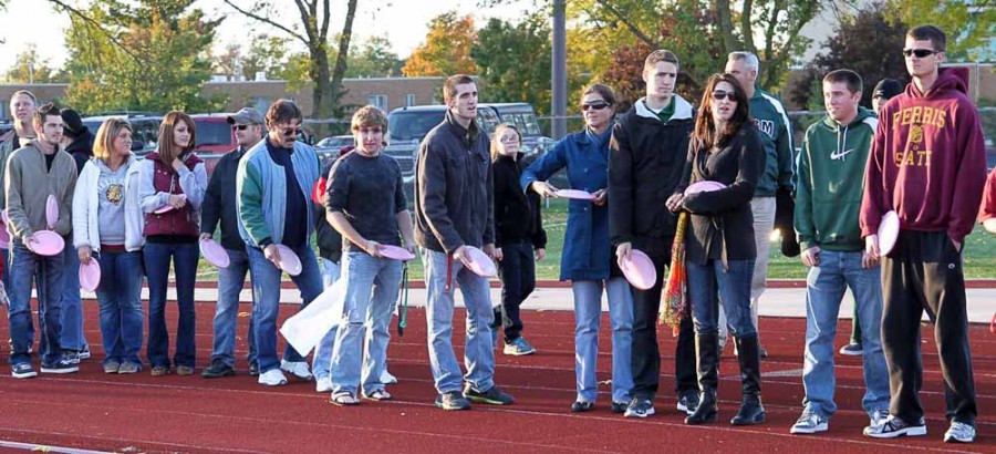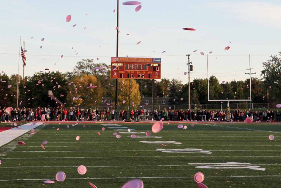 Duane Roberts, communications major at Ferris, said the opportunity to attempt the record was worth a chance. He said it was also a great idea to use pink discs to raise awareness for the need of cancer research.