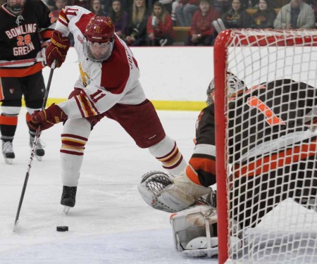 The Bulldogs built a 3-0 lead in the first period of the final game of the series. But BGSU managed to score once in the second period and twice in the third to tie it up and force overtime. Bowling Green State went on to win off of a deflection that was heading wide of the net.