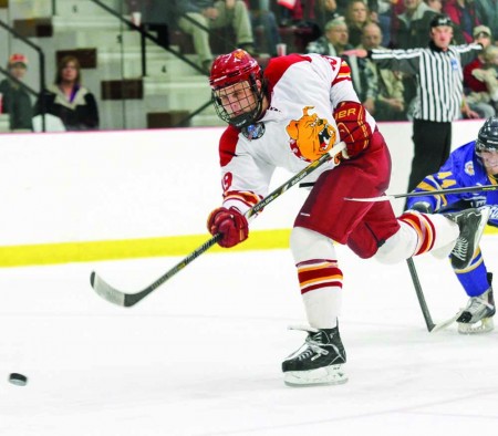 The Bulldogs, who are 11th-ranked in the nation according to both USA Today/USA Hockey Magazine and U.S. College Hockey Online’s Division I polls, hopped on their home ice for an exhibition tilt against Ryerson University Oct. 7. The Bulldogs delivered Ryerson an 8-2 defeat. Ferris’ junior forward Justin DeMartino tallied three goals in the match for his a hat-trick. The Bulldogs allowed their three netminders to each play out a period of their own to collect 20 minutes of action each. Ferris State held a 44-28 edge in total shots over the Rams of Ryerson. The Bulldogs will open the regular season on the road Oct. 12-13 for a non-league visit with RPI in Troy, N.Y. The puck will touch center ice at 7:05 p.m. in each game. Fans may listen in live on Sunny 97.3 FM or at the Bulldog Sports Network online at FerrisStateBulldogs.com