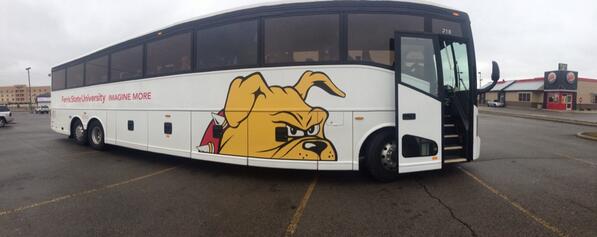 Bus stops near Ann Arbor. People hop out to stretch, relieve themselves, and get some food. I take to a nerf football game with Ferris Hockey “Super-Fan” John Milan and a few others while wearing my very restrictive blazer. I lean back and launch one that the wind catches, nearly hits and elderly woman. I proceeded to turn quickly back for the bus, head down in embarrassment.