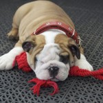 Mugzy, the bulldog puppy featured in the pictures below is primarily housed in the Timme Center, but can occasionally be spotted wandering campus with owner Shelli Garland.