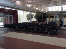 Students on their way to summer classes today had the odd surprise of 55 chairs filling up the IRC lobby.