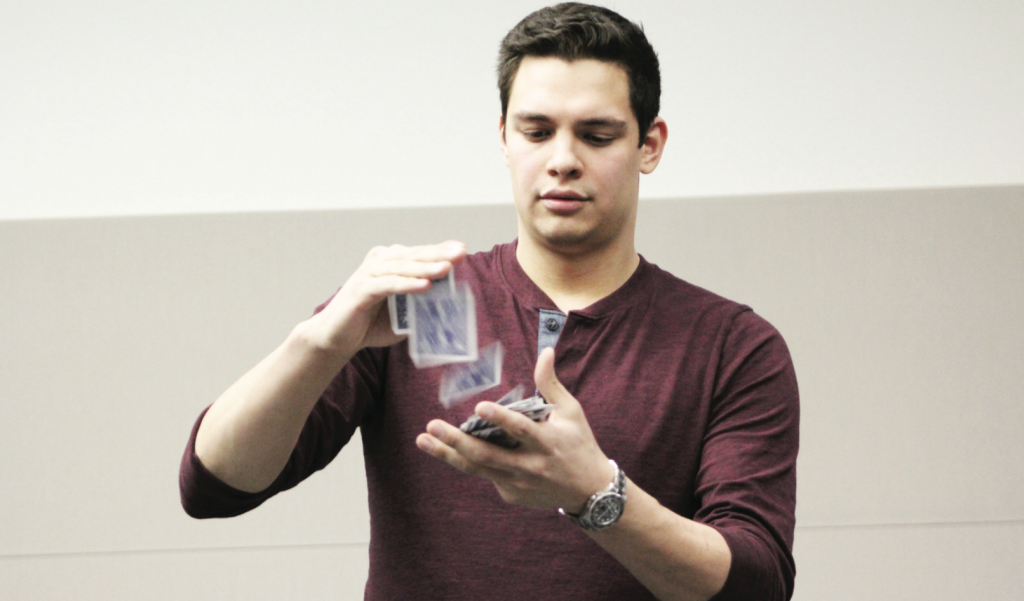 Steven Brundage shared his take on modern magic with a room full of fascinated students Thursday, Jan. 12, in the University Center ballroom.