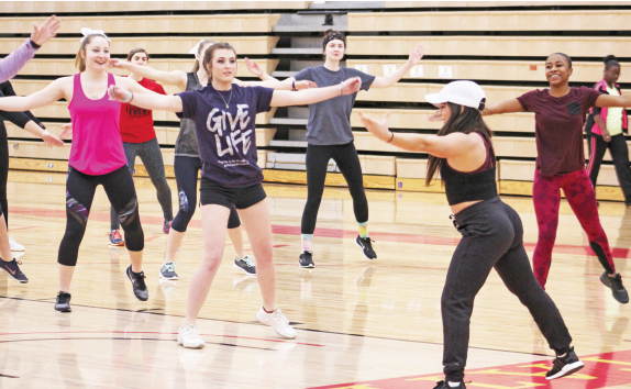 The Ferris cheer team hosted a zumba and yoga class with traveling instructor Shannon Maconi Saturday Jan. 28, in the Wink arena, and it was more than a typical workout.