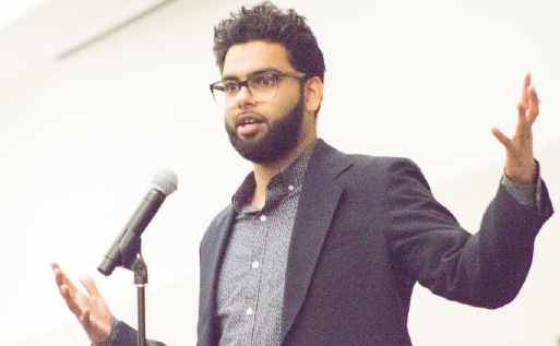 First generation American Syed Umar Warsi spoke to Ferris students about his experiences growing up as a Muslim man in America.