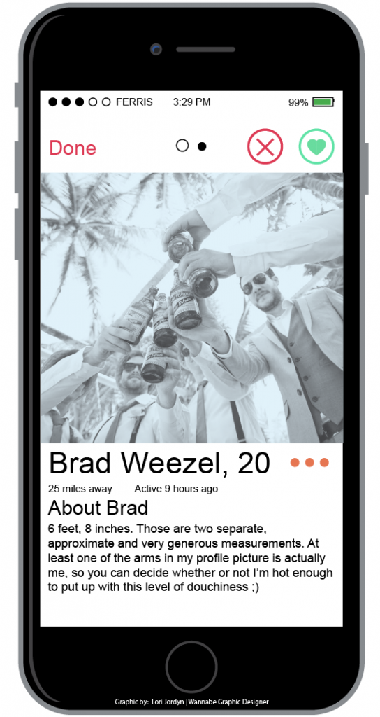 3. Include the goals of your Tinder experience. Are you cruising for tail, looking to get back at an ex or searching for a soulmate? There’s no use looking for love if all your matches are just looking for a booty call. And remember, revenge on an ex-boyfriend is a dick best served cold.
