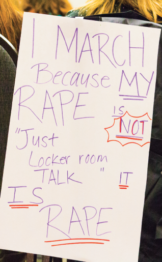 Ferris students and Big Rapids residents created signs and banners promoting rape awareness that were displayed throughout the ballroom during the presentations.