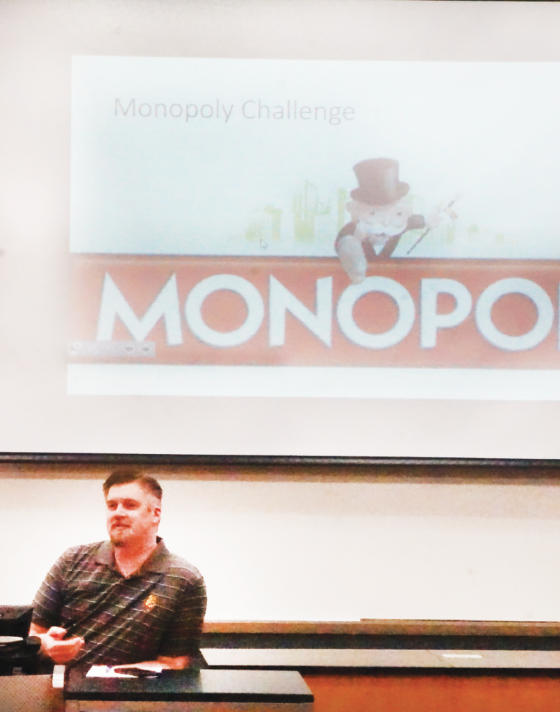 Ferris game design instructor Andrew Peterson talks to students about how to use games to their advantage when studying. Photo by: Nick Vander Wulp | Lifestyles Editor