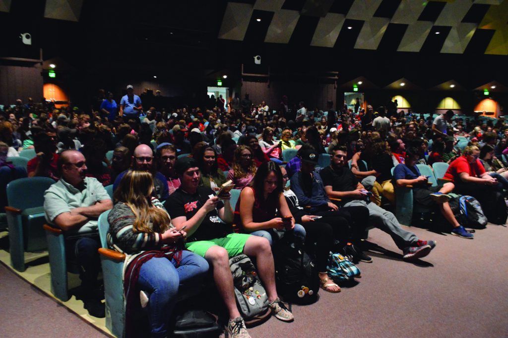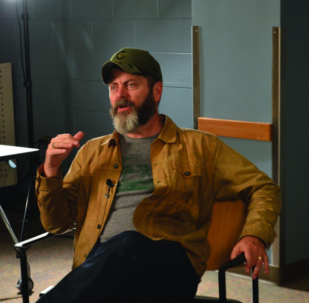 A capacity crowd packed Williams Auditorium and began lining up long before doors opened to see Homecoming comedian Nick Offerman on Thursday, Sept. 28.
