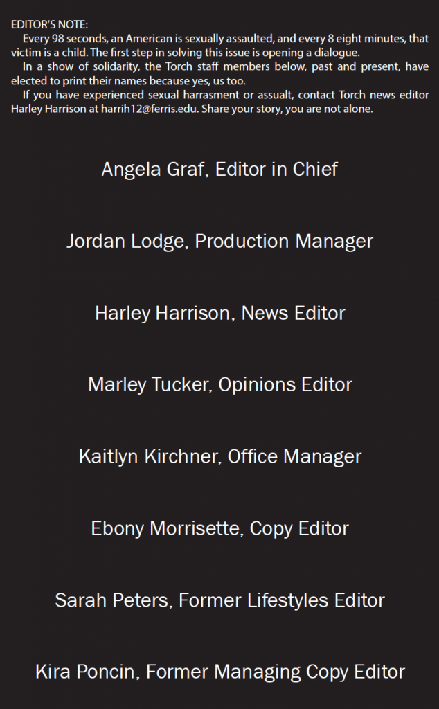 It is time for us to destroy rape culture by reporting our abusers and testifying for justice. We need to demand that rape kits get tested and “locker room talk” sees its deserved consequences. We need to stop accepting and forgetting the rapists who walk free after only three months in prison or the rapists who never even get convicted. We must stop being inactive bystanders and we need to stop shaming the survivors who desperately need our support.