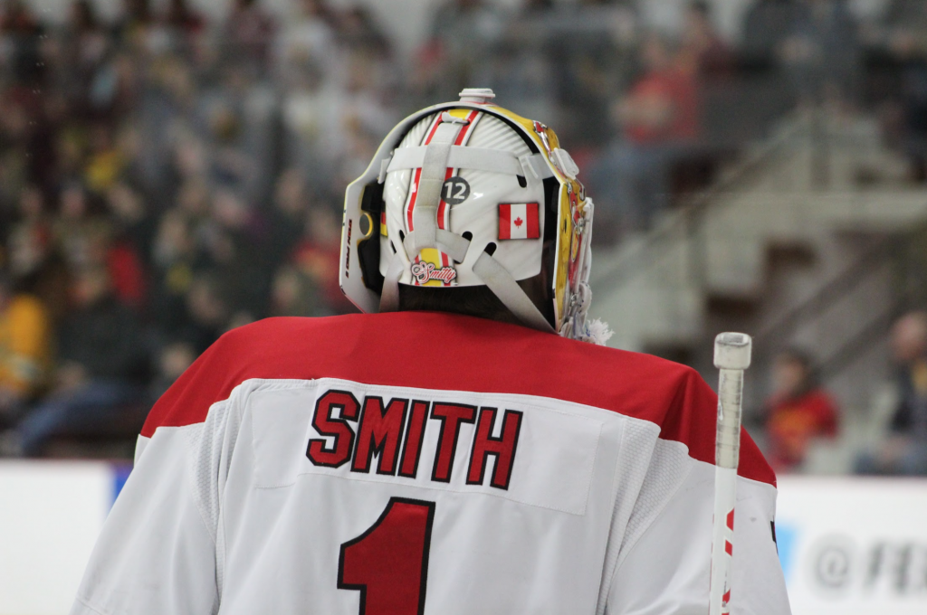 “I felt good all weekend. I felt locked in. I thought the guys played really well in front of me and made my job a lot easier. I was just seeing pucks well tonight and the guys were clearing the lanes,” Smith said.