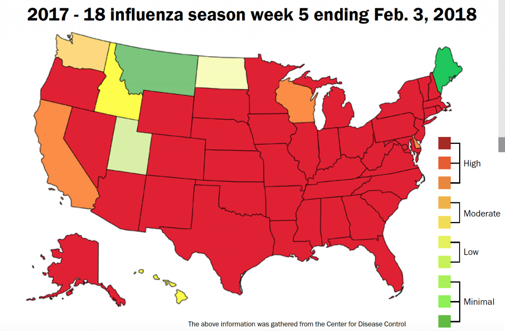 According to data from the Centers for Disease Control and Prevention (CDC) this year’s flu season is on pace to be the worst in at least eight years. The data, which only goes back to 2010, shows that as of January, 2018 has the highest amount of laboratory confirmed influenza hospitalizations out of the last eight years.