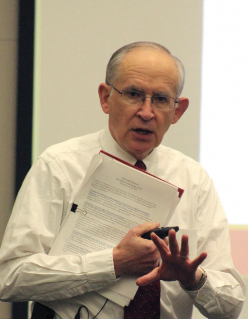 In the last two years, Ferris has reduced the university budget by $9.25 million and is likely to continue on that pace for the next four years. On Wednesday, Feb. 21, and Thursday, Feb. 22, Ferris President David Eisler held a total of three presentations for faculty and staff about the state of the budget at Ferris.