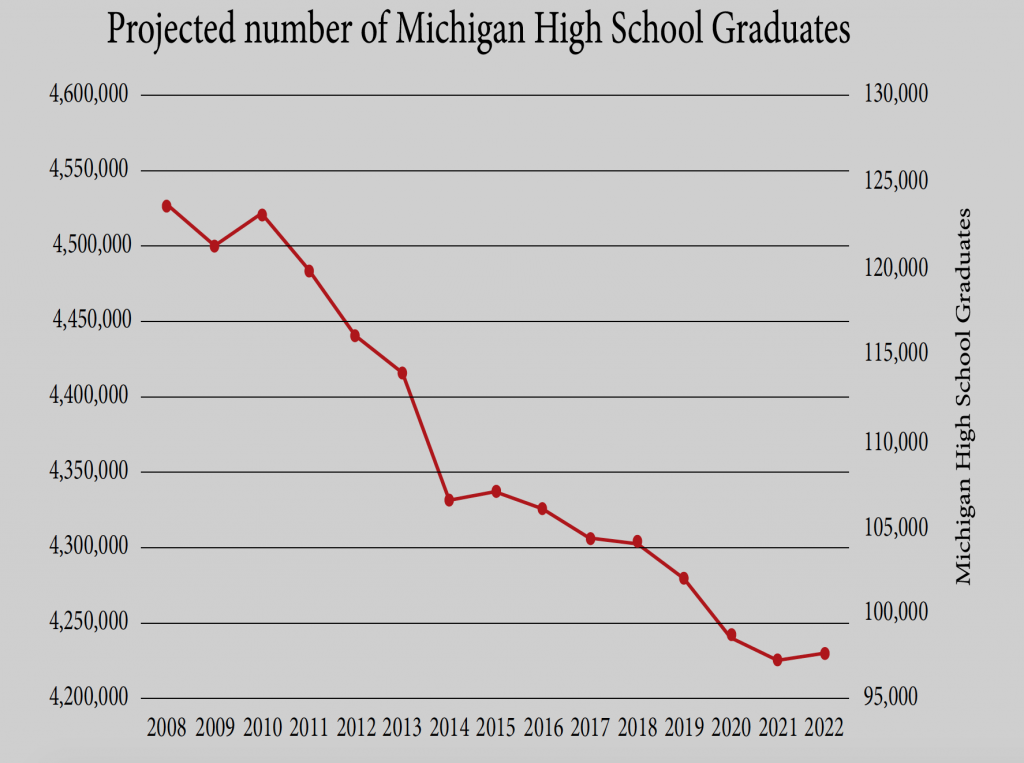 The cuts are part of a plan to combat the continuous decrease in Michigan high school graduates, which is impacting college enrollment. Tuition makes up 76 percent of Ferris’ general fund and the university has seen a 10.3 percent decrease in first time in any college (FTIAC) students since 2013 and a decline of 19,754 student credit hours since 2014. Ferris is pushing hard to increase enrollment in order to reduce budget cuts but enrollment has declined in almost every Michigan university this year and high school graduation rates are predicted to continue a steady decline over the next few years as well.