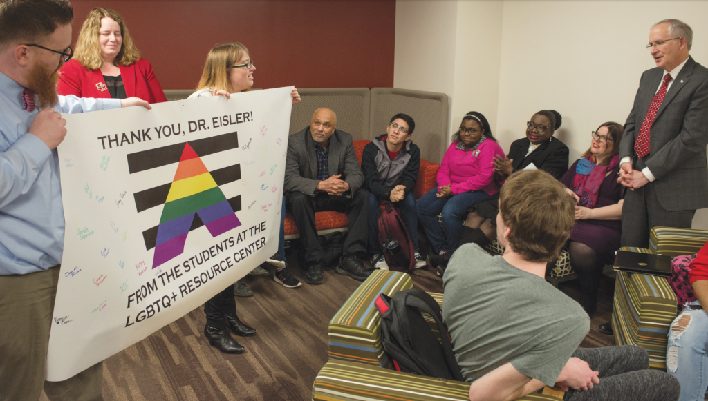 The Ferris LGBTQ+ Resource Center held an open house Feb. 28 in which President Eisler was in attendance. Photo courtesy of Bill Bitzinger