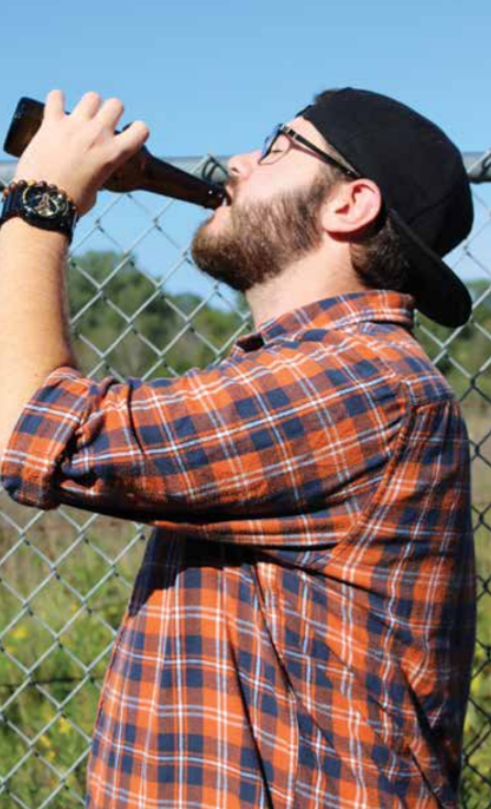 Ferris construction junior Charlie Zitta enjoys a cold one as a way to unwind after class. Photo by : Taylor Davis I Torch Photographer
