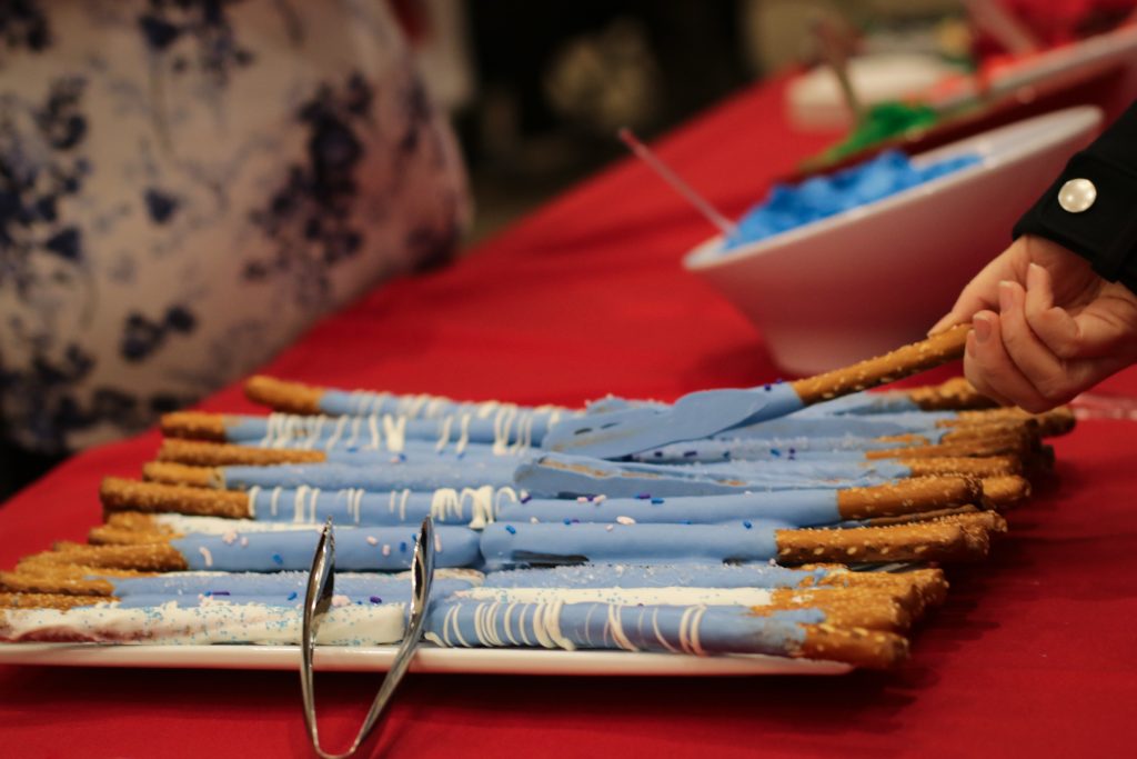 Chocolate-covered pretzels were one of the many sweet treats at the holiday event. Photo by: Megell Strayhorn | Multimedia Editor