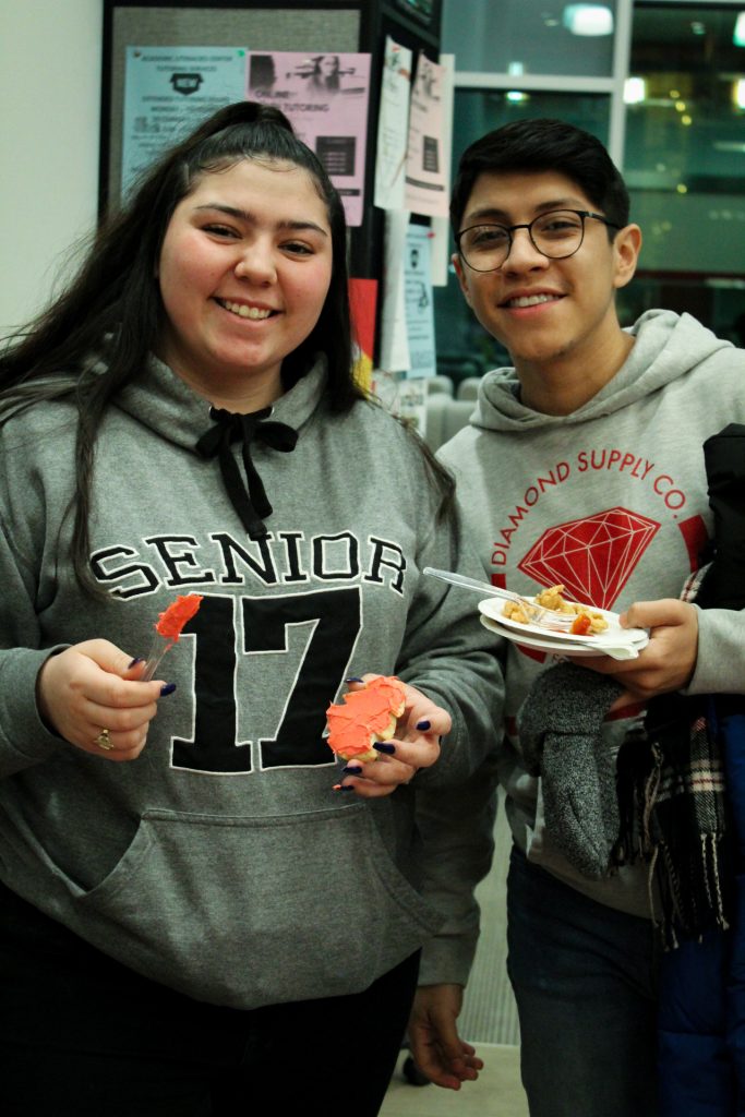Two Bulldogs enjoy some holiday snacks inside the University Center. Photo by: Taylor Davis | Torch Photographer