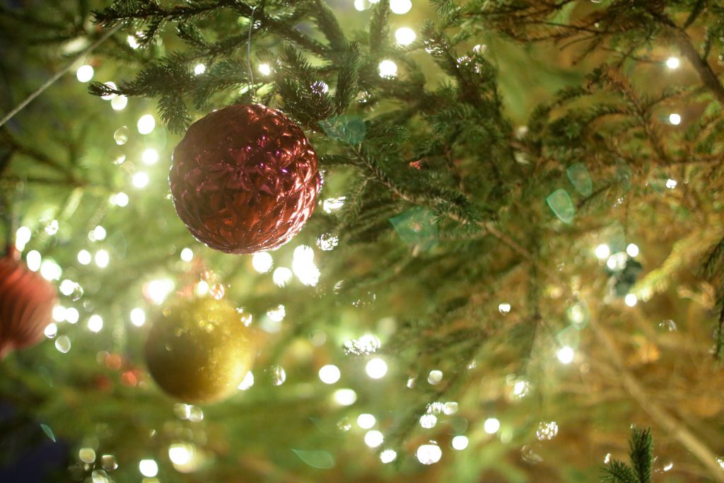 Colored ornaments cover the Christmas tree on campus. Photo by: Megell Strayhorn | Multimedia Editor