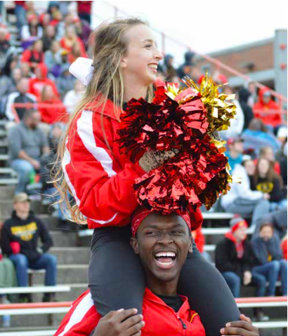 Not many men decided to join the cheer team, a big factor Tyrell noted for not joining his high school’s team. But once he arrived at Ferris, he was persuaded to try out by a close friend on the team and he hasn’t regretted it since.