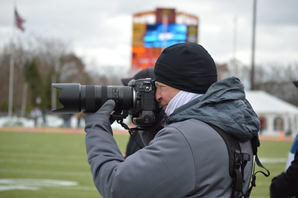 That man is Kevin McDermott. McDermott is a sports photographer who takes pictures for some of the Ferris sports teams, and in particular for the football team. He has been in this role for the last seven years, even though he resides in Illinois with his wife of 34 years.