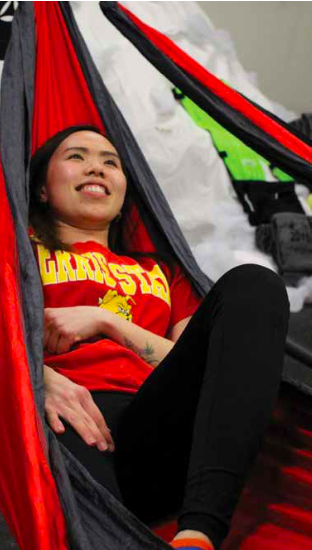 Ferris product design engineering senior Sirinporn Phakamad relaxes in a hammock. Photo by: Taylor Davis | Torch Photographer