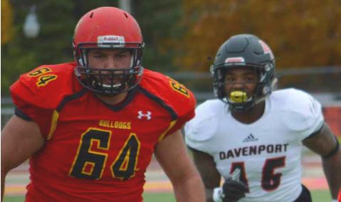 Many athletes are superstitious and perform rituals prior to every game. Ferris junior offensive lineman Cody Carr gets his head in the game by drinking a gallon of water and listening to the same music the night before. Photo by: Samantha Cavotta | Torch Photographer