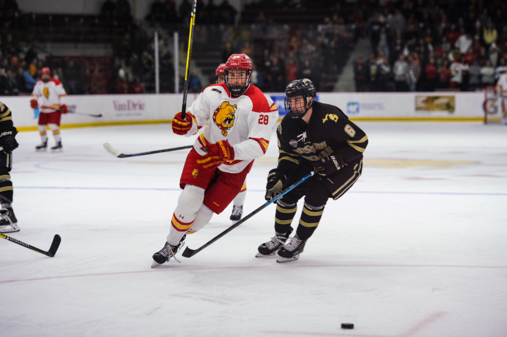 With a close loss, the hope was the home-ice advantage of the Ewigleben Ice Arena would be enough to give Ferris State the edge. For one period, it seemed to be the case, as the team went into the second period tied at 1-1 with a goal by senior forward Dominic Lutz.