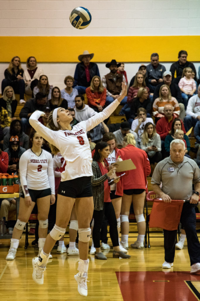 Wednesday, Nov. 20, Ferris hosted the league quarterfinals at Ewigleben Sports Arena against Wisconsin-Parkside. Ferris won all three sets against Parkside, completing the sweep in a tough third set. The Bulldogs were led by a trio of seniors: Maeve Grimes, Allyson Cappel and Courtney Brewer, along with juniors Katie O’Connell and Nina Gorgijevska, sophomore Samantha Hermann and freshman Kira Merkle.
