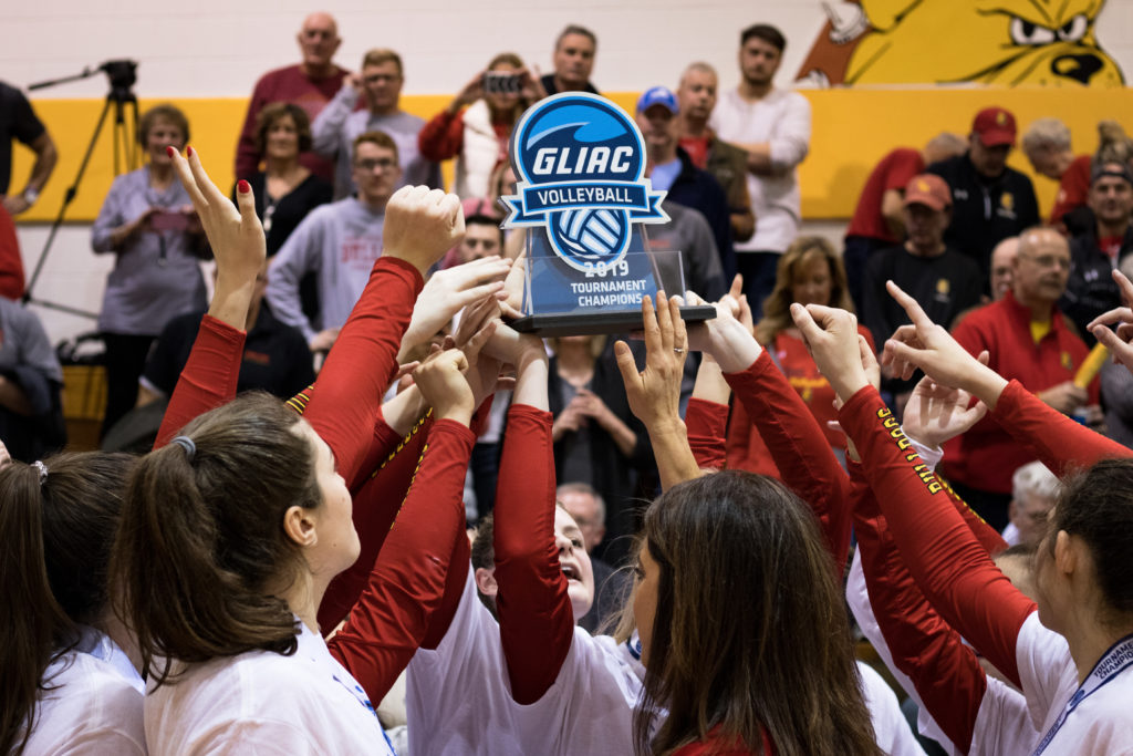 The bands were competing, the fans were rowdy, and the Huskies of Michigan Tech and the Bulldogs of Ferris State were ready to roll. The stage was set for the 2019 women’s volleyball GLIAC Tournament Championship game.