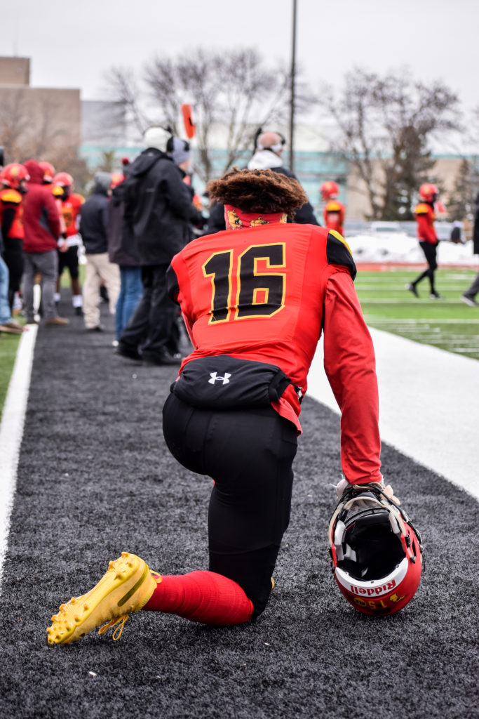 Annese was in awe of his team’s efforts in the Super Region 3 Final on Saturday, Dec. 7. In a game that only saw two touchdowns, it was a defensive battle from the kickoff. The halftime score was 3-0, with senior kicker Jackson Dieterle, who went 3-3 in field goals, scoring Ferris’ lone points of the half.