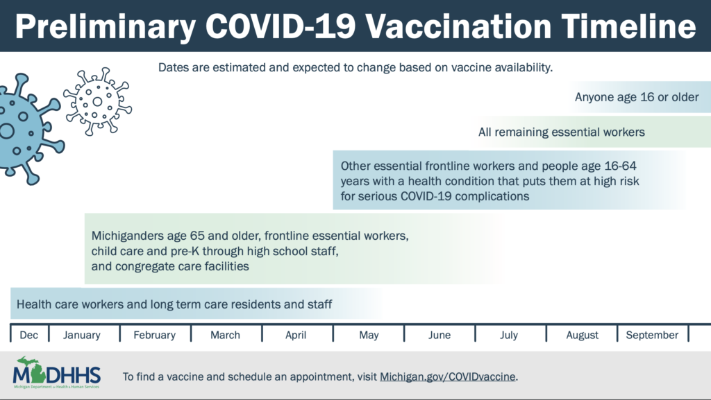 As for current vaccine delivery, numbers are finally picking up for Michigan. In early January Michigan ranked seventh-worst in the country, but now it’s hovering around 25th. As of Jan. 15, at 6 a.m. the CDC reports 364,000 doses of the vaccine have been administered in the state.