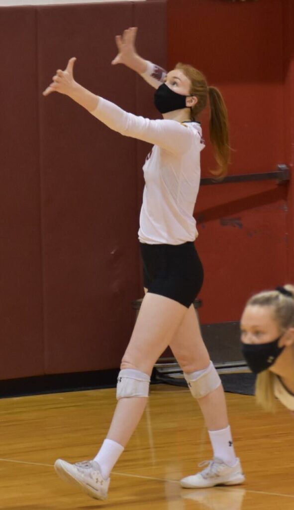 O’Connell led the team with 18 points including 17 kills. Junior middle hitter Samantha Hermann was second with 15 points on the evening, tallying 14 kills to go along with two block assists.