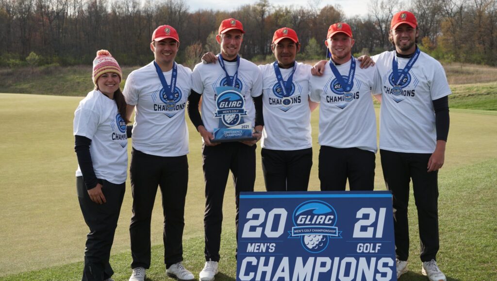 “It was a wonderful moment watching the men win the GLIAC championship,” head coach Kylee Sullivan said. “They battled hard through two tough matches that day which made for a very exciting afternoon. I was very proud watching them collect the trophy.”