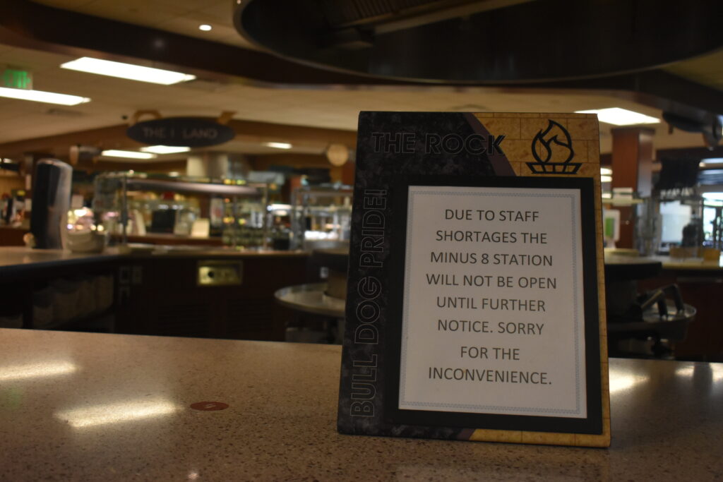 Staffing shortages at the Rock, an on-campus dining location, have resulted in the shutdown of two of the loca- tion’s 12 stations.