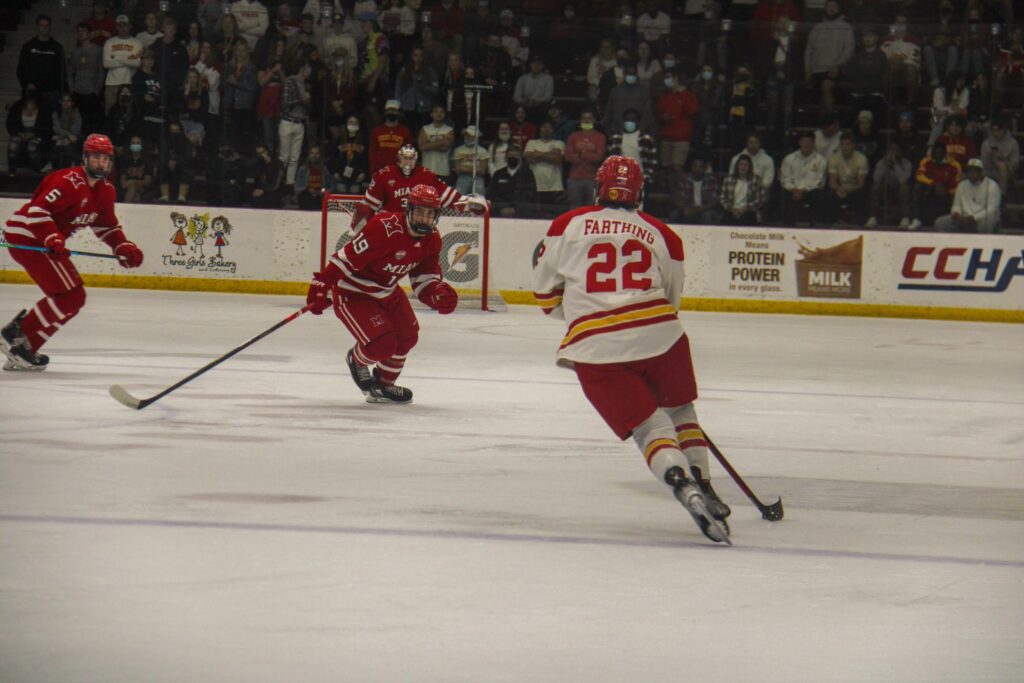 Miami scored again, followed by two more Bulldog goals in the first period. Senior forward Marshall Moise and sophomore defenseman Sam Skinner recorded the two Bulldog goals, giving them a 4-2 lead after the first period.