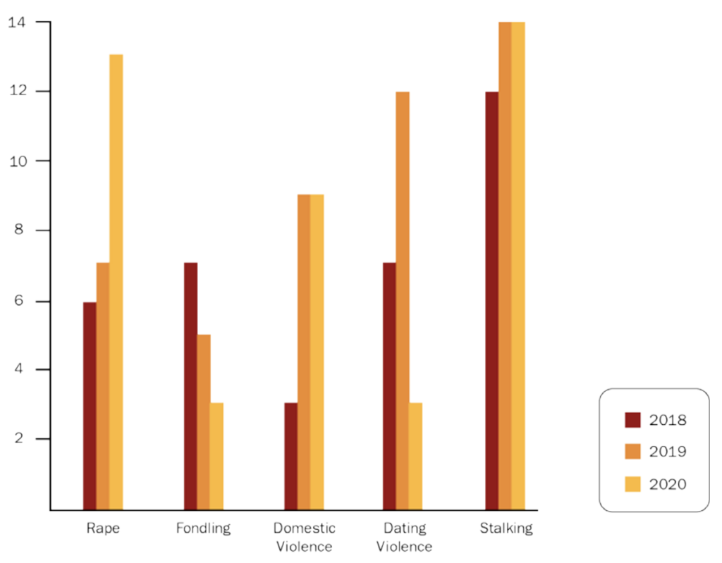 This year’s Security and Fire Report showed that reports of rape on campus nearly doubled, rising from seven in 2019 to 13 in 2020.