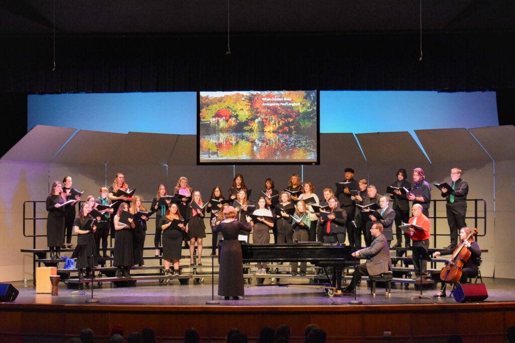 Songs that were sung in this concert included “The Lake” written by Edgar Allen Poe. The piece was put into a two part medley about a gorgeous body of water and how it can help with lost love. The choir also put together another two medley arrangement of “Earth Song” by Frank Ticheli and “When October Goes” by Paul Langford.