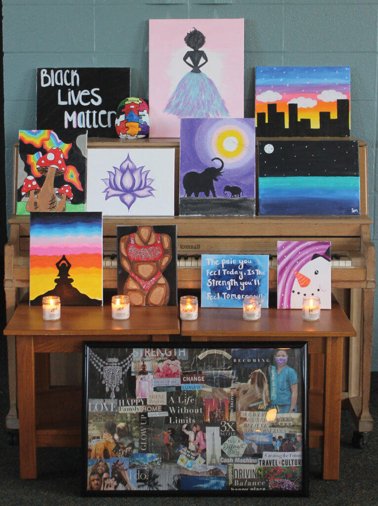 People mingled and made friendship bracelets in honor of Asanpi after the ceremony. Years of Asanpi’s artwork were displayed next to the podium and a TV that played pictures of her throughout her life. Her vision board was laid across the bottom of the paintings. A spin on her favorite food, dessert pizza, was set out for everyone to snack on along with other refreshments.
