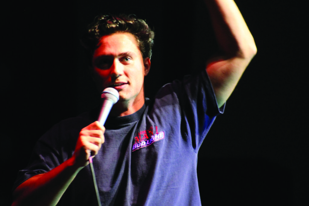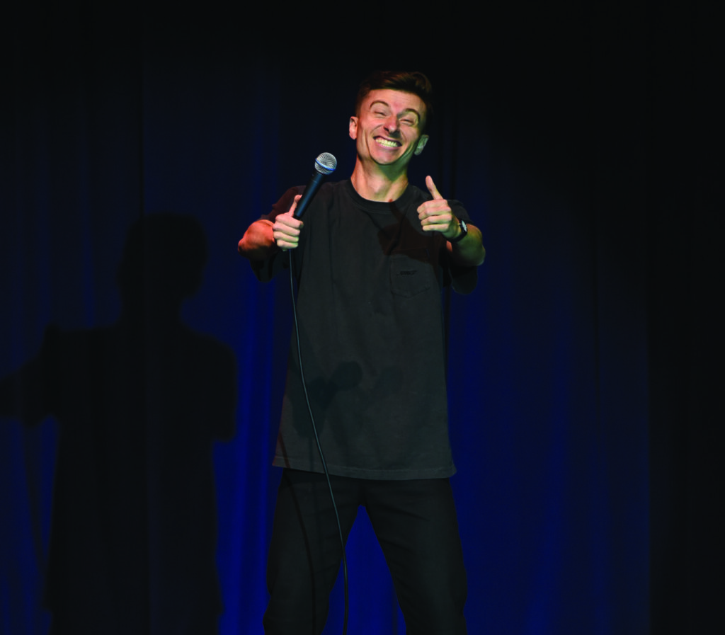 Comedian Alec Flynn opening for Homecoming headliner Trevor Wallace with material on alpha males and dating apps. Photo credit: Dylan Rider l Sports Editor