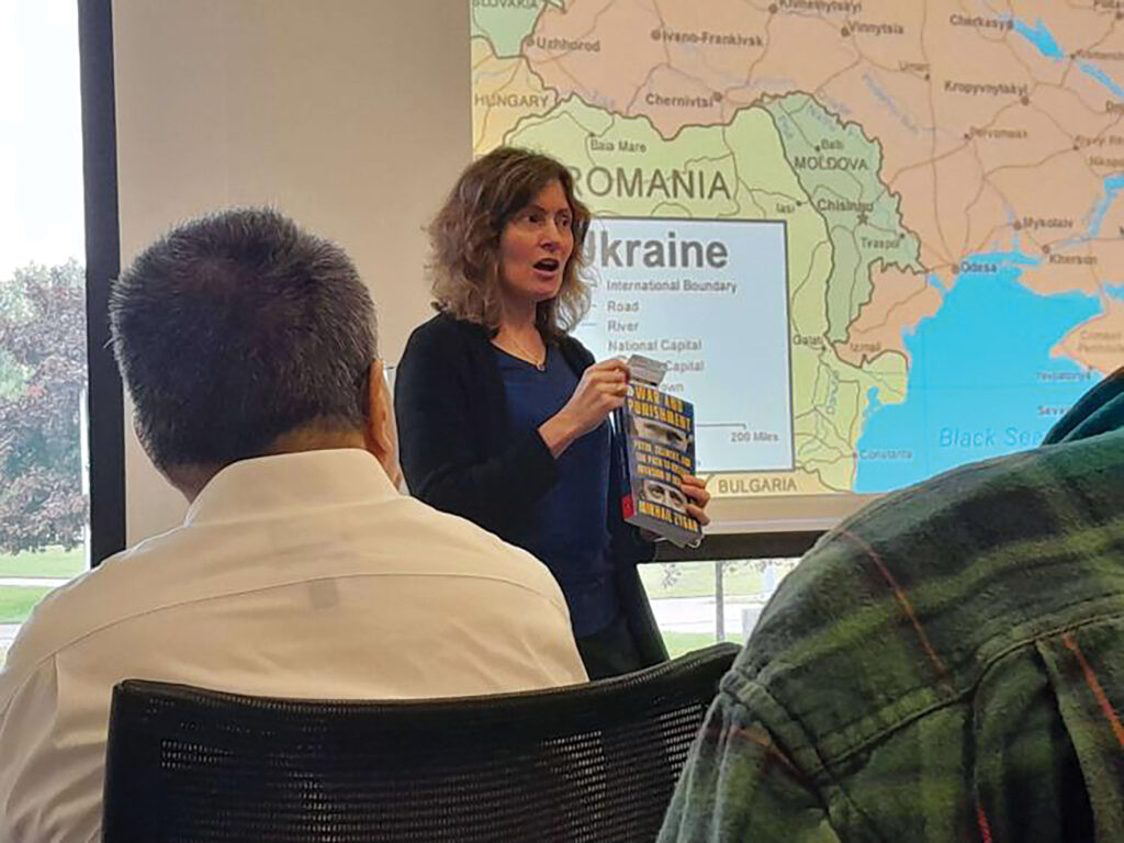 Dr. Tracy Busch presented information about the ongoing war with Russia and Ukraine on Thursday.
