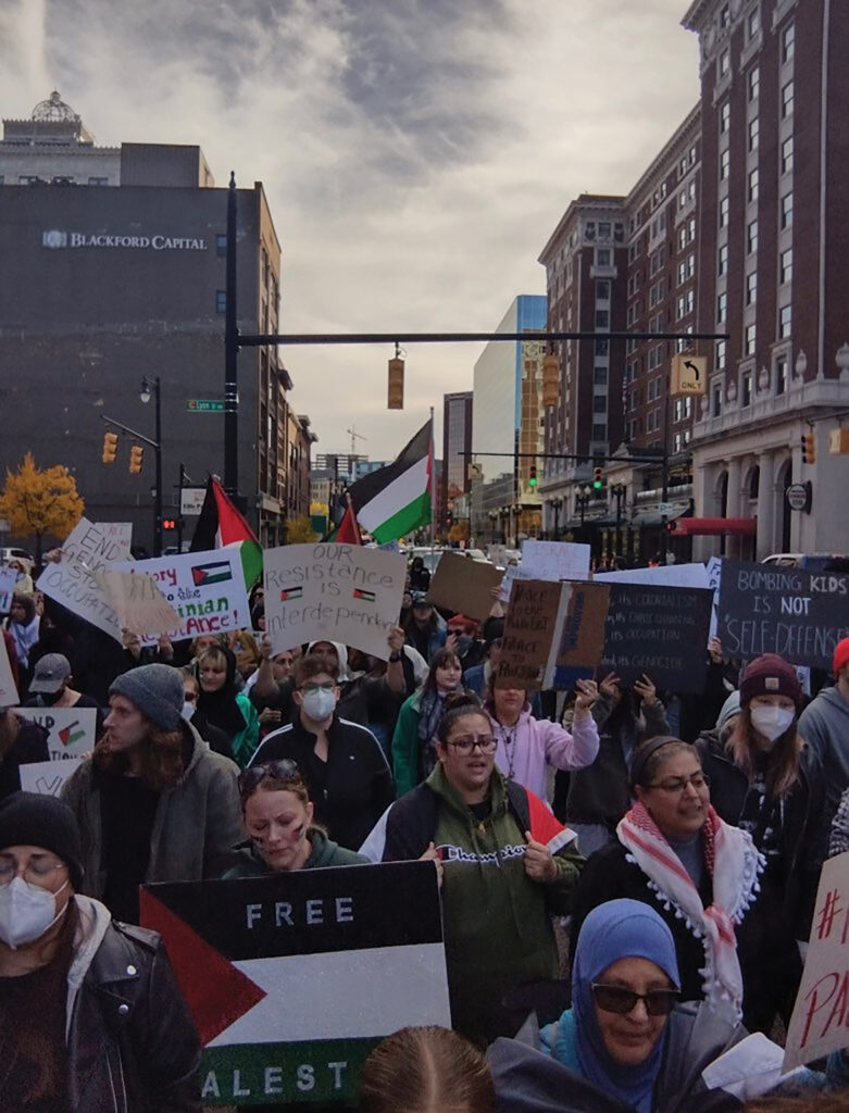 At the North Quad on Oct. 25, members of the Feminist Majority Leadership Alliance attended a demonstration and distributed information to students on the genocidal acts being committed in front of us. On Oct. 28, I and another two students drove to Grand Rapids to participate in a protest of over 100 people marching in the streets.